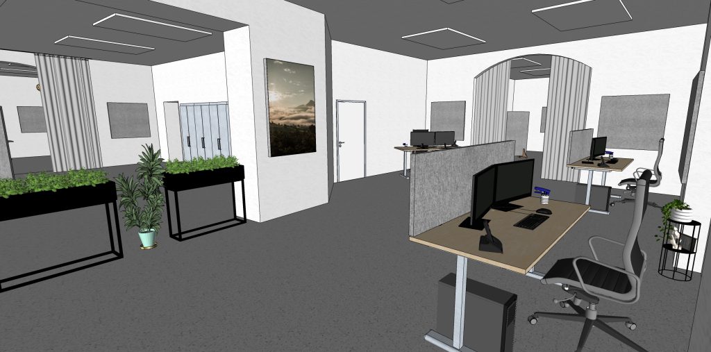 Die Büros und Besprechungszimmer eines IT-Dienstleisters aus Bielefeld wurden mit HOFA Akustivorhängen und Akustiksegeln optimiert.
