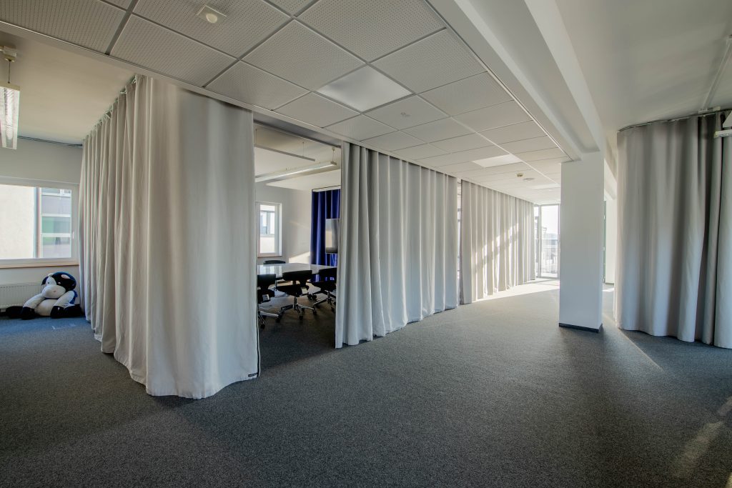In einem modernen Großraumbüro wurden mithilfe unserer ISO-Vorhänge einzelne Arbeitsbereiche akustisch voneinander getrennt. Die flexible Anordnung der Vorhänge ermöglicht eine variable Nutzung der Büroflächen und erlaubt es, den Raum jederzeit an wechselnde Anforderungen anzupassen. Neben dem hohen Schalldämmmaß verfügen die ISO-Vorhänge über ausgezeichnete absorptive Eigenschaften. Dadurch konnte die Nachhallzeit im...