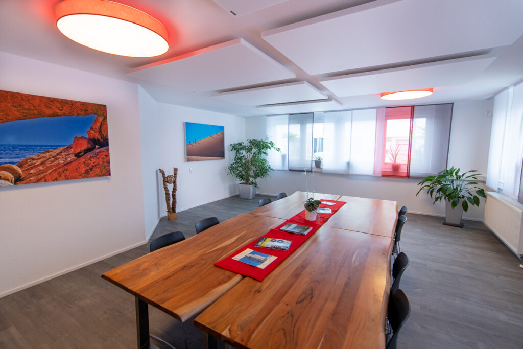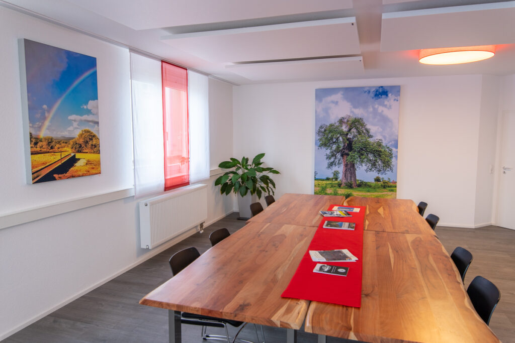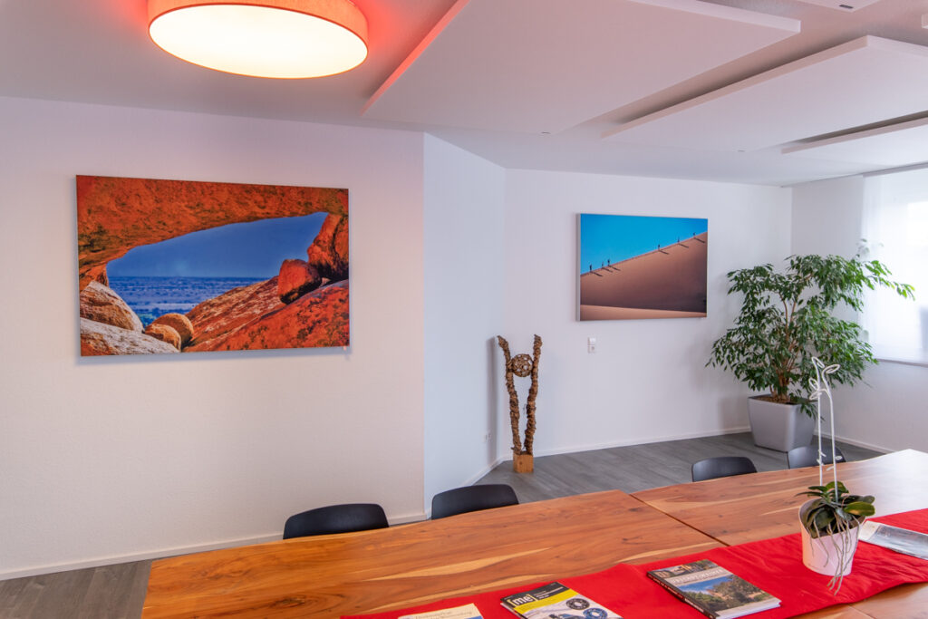 „In unserer kleinen Kantine, wir nennen es Esszimmer, ist immer was los, ein Kommen und Gehen und ständig mehr oder weniger laute Gespräche. Die großformatigen Akustikbilder erzeugen eine angenehme Atmosphäre und zusammen mit den Deckensegeln sorgen sie auch bei viel Betrieb für eine hohe Aufenthaltsqualität. Beste Beratung und Ausführung der Arbeiten zeichnet wiederum Hofa aus!“